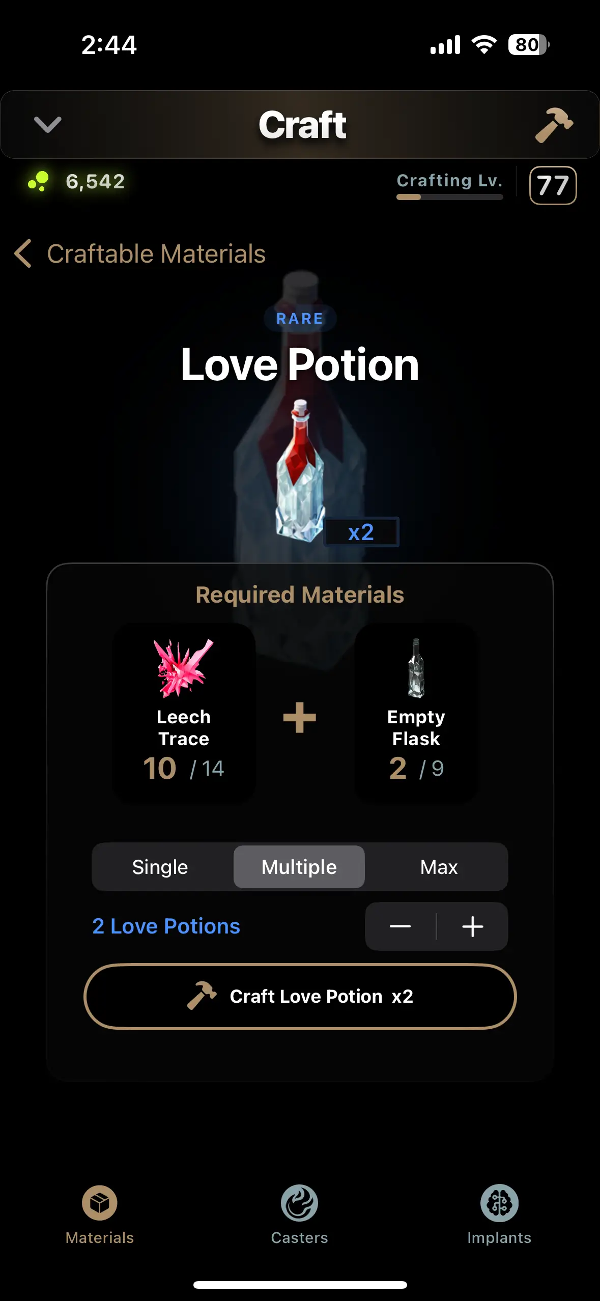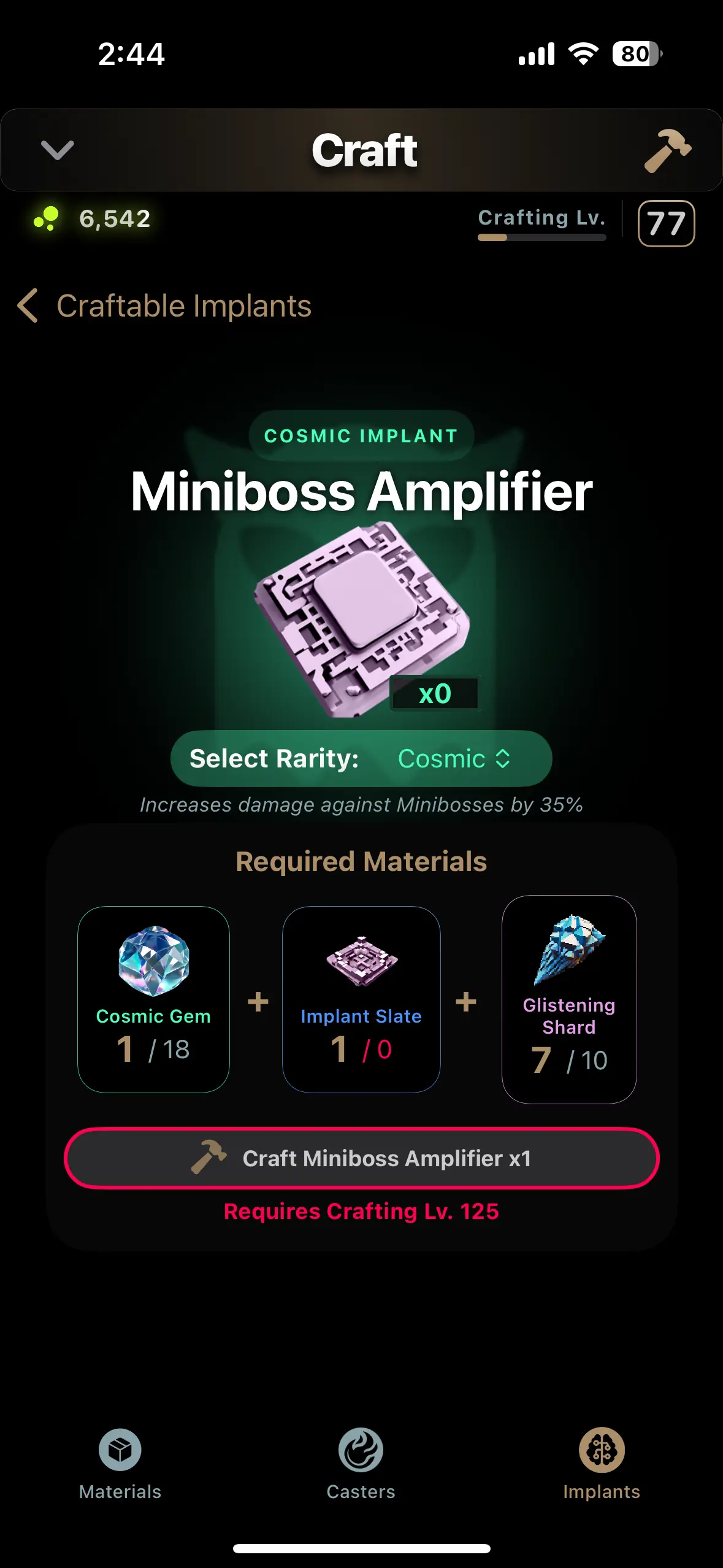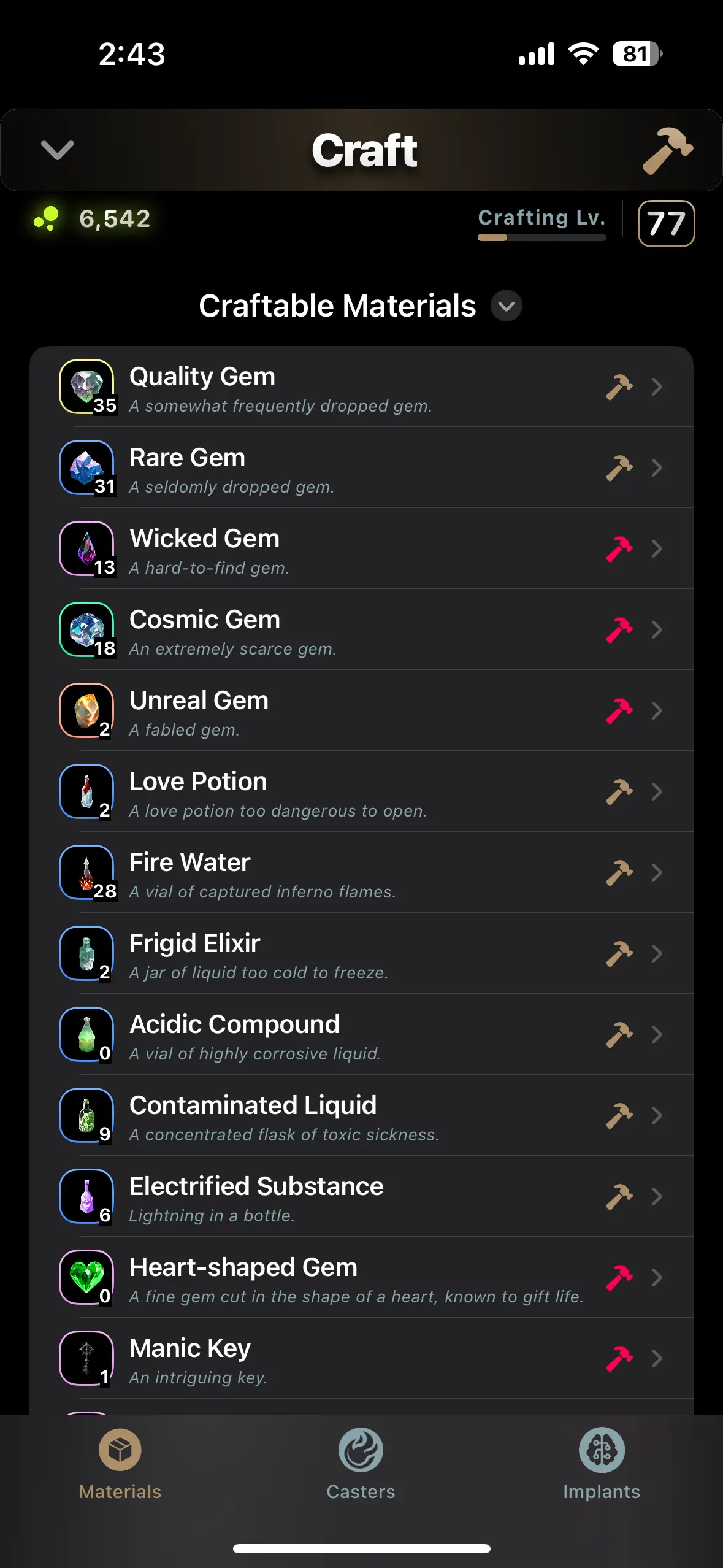 The Crafting System unlocks at Lucid Lv. 5 and allows you to craft Casters, Implants, and other Materials.