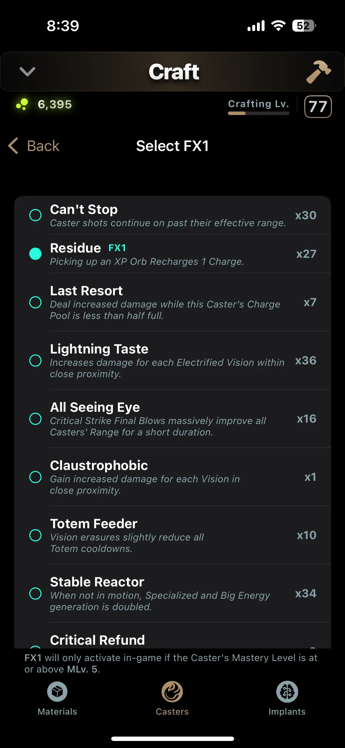 Crafting is a way to build your perfect Caster, with stats and FX that you want. After crafting Casters or Implants, you can choose to use them to play activities, or you can sell your wares in the Bazaar.