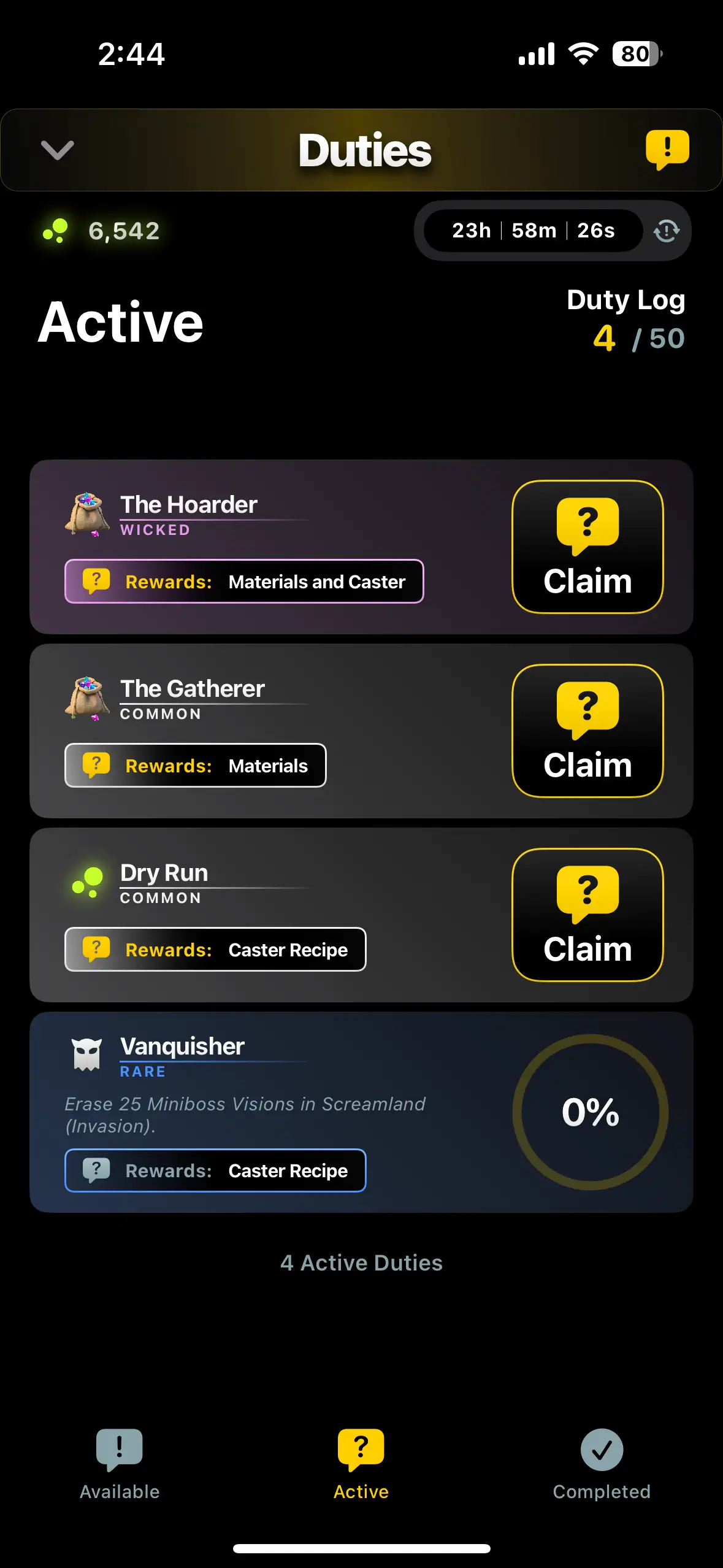 Once a Duty is completed, a banner will display in-game, and the Duty can be completed back in the Duties screen under the Active tab. Once Completed, the Duty will move to the Completion log for historical reference and applicable rewards will be given to you.