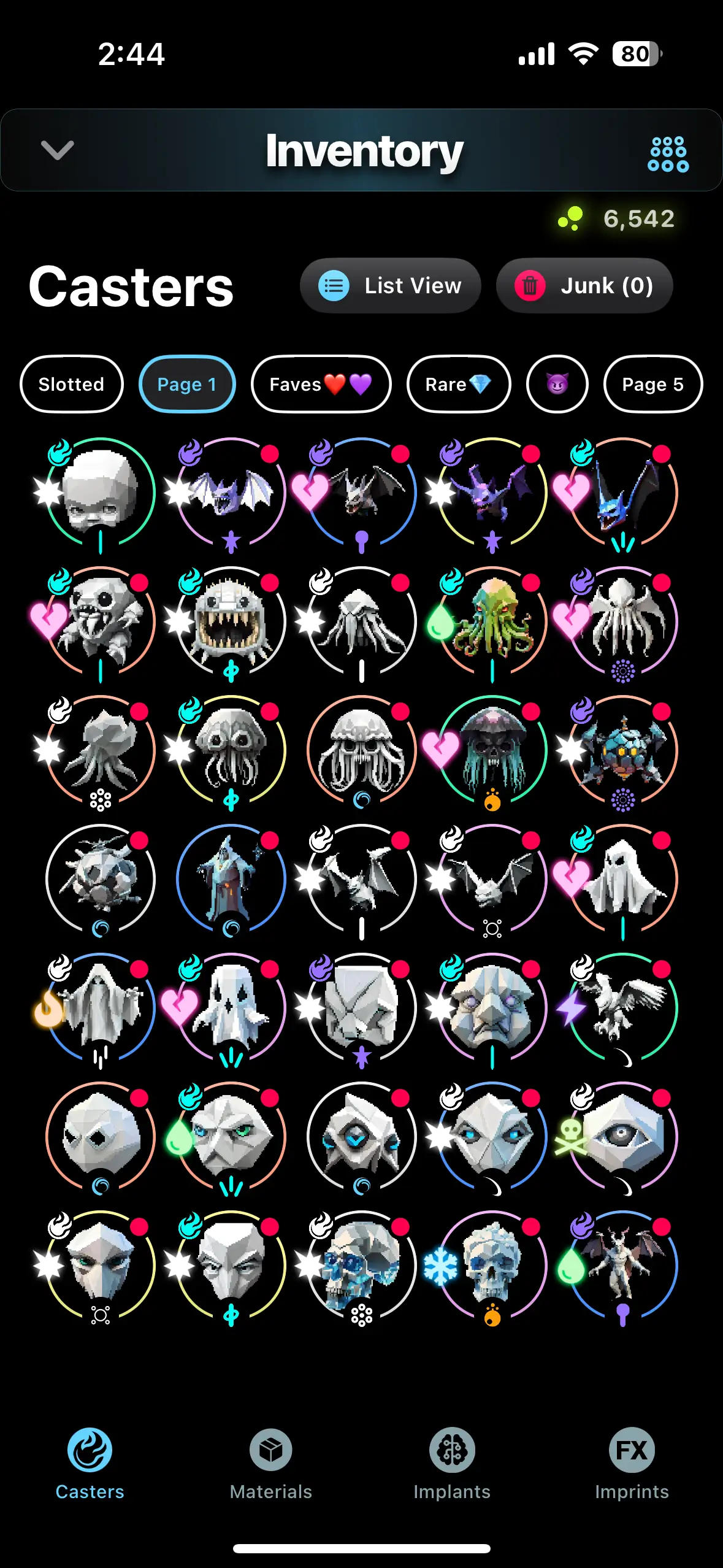 Grid View has 6 pages of Casters and allows you to move and re-arrange your Casters to help organize them how you want. Grid View is limited to the first 250 Casters you have in your Inventory. To view all your Casters, List View is required. To move Casters in Grid View, tap and hold a Caster and you can drag and drop it to a new slot, or to a different page.